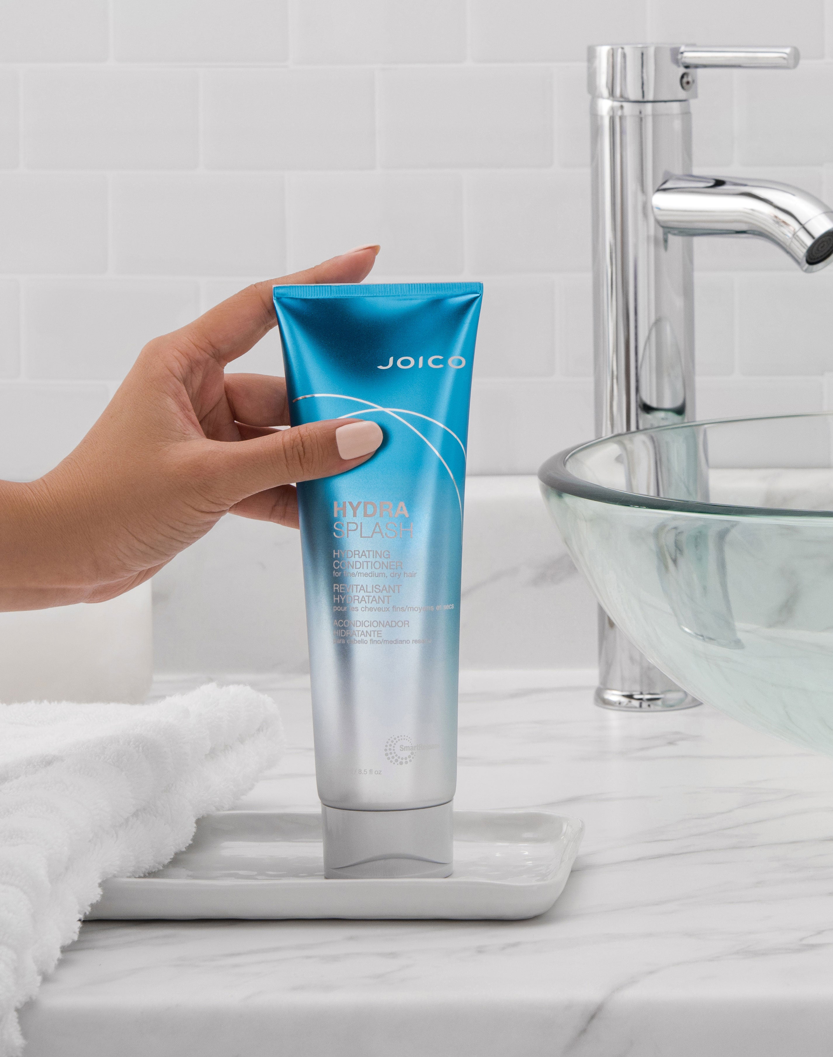 Formulated with ultra-hydrating marine ingredients like Sea Kelp and Coconut Water, Joico HydraSplash Hydrating Conditioner gives fine hair an immediate, lightweight splash of moisture, plus detangling power, elasticity, and shine.